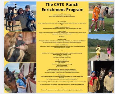 Your support and contributions will enable us to meet our goals and fund our mission. Donate here at www. Catsranch.org , and help us support our rescue therapy horses and youth.